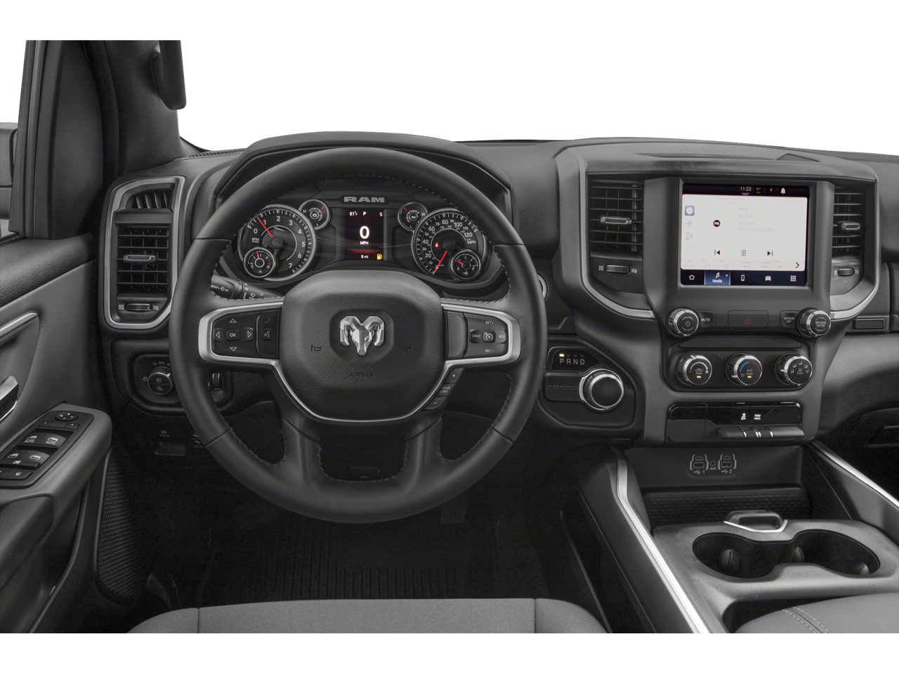 ENGINE: 5.7L V8 HEMI MDS VVT ETORQUE Active Noise Control System, Heavy Duty Engine Cooling, Passive Tuned Mass Damper, GPEC 5 Engine Controller, GVWR: 7,100 lbs, Dual Rear Exhaust w/Bright Tips, HEMI Badge, 26 Gallon Fuel Tank, WHEELS: 20 X 9 ALUMINUM CHROME CLAD (WRK), BIG HORN LEVEL 1 EQUIPMENT GROUP Google Android Auto®, SiriusXM Radio Service, Bluetooth® Handsfree Phone & Audio, USB Host Flip, Rear Window Defroster, Integrated Center Stack Radio, Rear View Auto Dim Mirror, For Details, Visit DriveUconnect.com, Power Adjustable Pedals, For More Info, Call 800-643-2112, Rear Power Sliding Window, Rear Dome w/On/Off Switch Lamp, Connectivity - US/Canada, Glove Box Lamp, 4G LTE Wi-Fi Hot Spot, Exterior Mirrors w/Heating Element, Power 8-Way Driver Seat, Auto Dim Exterior Driver Mirror, Radio: Uconnect 5 W w/8.4 Display, 8.4 Touchscreen Display, Class IV Receiver Hitch, Black Premium Power Mirrors, Apple CarPlay®, Big Horn IP Badge, SiriusXM Satellite Radio, Exterior Mirrors w/Supplemental Signals, Exterior Mirrors Courtesy Lamps, Universal Garage Door, DIESEL GRAY/BLACK, DELUXE CLOTH BUCKET SEATS Power 8-Way Driver Seat, Bucket Seats, Full Length Floor Console, Delete LED Lamp - Floor Console Bin, Power 2-Way Driver Lumbar Adjust, TRANSMISSION: 8-SPEED AUTOMATIC (8HP75). Ram Big Horn with Diamond Black Crystal Pearlcoat exterior and Diesel Gray/Black interior features a 8 Cylinder Engine with 305 HP at 6400 RPM*.