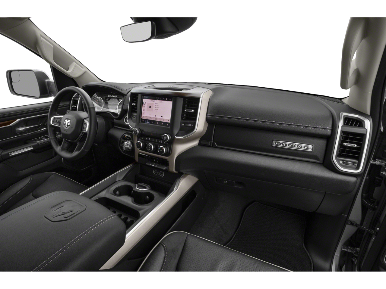 LARAMIE LEVEL II EQUIPMENT GROUP Remote Tailgate Release, harman/kardon® 19 Speaker Premium Sound, Auto High Beam Headlamp Control, Blind Spot & Cross Path Detection, Rain Sensitive Windshield Wipers, ParkSense Front/Rear Park Assist w/Stop, Wireless Charging Pad, Foam Bottle Insert (Door Trim Panel), Radio: Uconnect 5 Nav w/8.4 Display, USB Host Flip, Disassociated Touchscreen Display, HD Radio, For More Info, Call 800-643-2112, Integrated Voice Command w/Bluetooth®, GPS Navigation, SiriusXM w/360L, All Radio Equipped Vehicles, Connected Travel & Traffic Services, All R1 High Radios, ENGINE: 5.7L V8 HEMI MDS VVT Active Noise Control System, Heavy Duty Engine Cooling, Passive Tuned Mass Damper, GVWR: 7,100 lbs, Dual Rear Exhaust w/Bright Tips, HEMI Badge, 220 Amp Alternator, BLACK, LEATHER TRIMMED BUCKET SEATS Bucket Seats, Full Length Upgraded Floor Console, WHEEL TO WHEEL SIDE STEPS, TRANSMISSION: 8-SPEED AUTOMATIC (8HP75). Ram Laramie with Delmonico Red Pearlcoat exterior and Black interior features a 8 Cylinder Engine with 305 HP at 6400 RPM*.