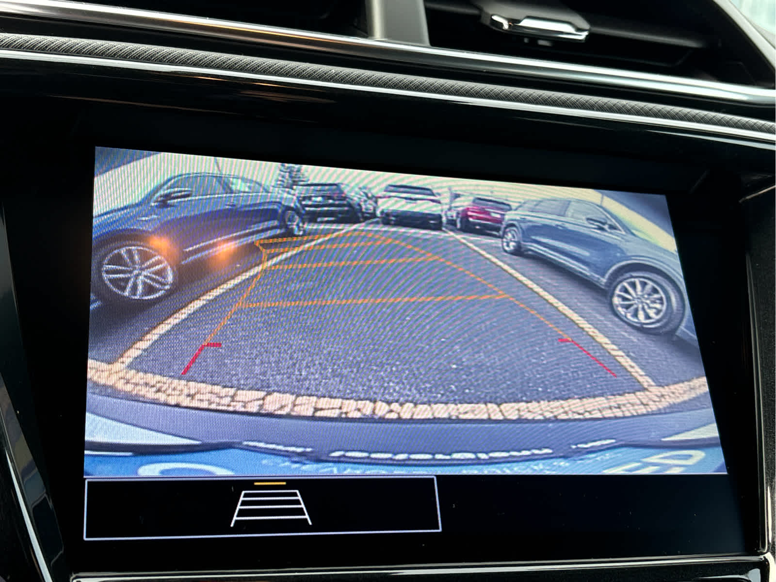 - Selectable dynamic guidelines laid over the display image assist in parking maneuvers by showing the vehicle's path