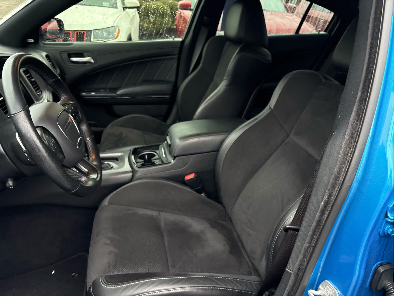 PLUS GROUP Blind Spot Memory/Power/Heat Mirror, Blind Spot & Cross Path Detection, Projector LED Fog Lamps, Black-Edged Premium Floormats, Exterior Mirrors Courtesy Lamps, Premium-Stitched Dash Panel, Locking Lug Nuts, Exterior Mirrors w/Heating Element, Auto Dim Exterior Driver Mirror, Driver & Passenger Lower LED Lamps, Heated Steering Wheel, Deluxe Security Alarm, Auto Adjust In Reverse Exterior Mirrors, Front & Rear LED Map Pockets, Front Overhead LED Lighting, BLACKTOP PACKAGE Gloss Black I/P Cluster Trim Rings, Black 1-Piece Performance Spoiler, Black Dodge Grille Badge, Satin Black Charger Decklid Badge, Satin Black Dodge Tail Lamp Badge, Blacktop R/T Badge, Wheels: 20 x 8 Black Noise Painted, Rhombi 2-Pc Wheel Center Cap, TRANSMISSION: 8-SPEED AUTOMATIC (8HP70) (STD), ENGINE: 5.7L V8 HEMI MDS VVT (STD). Dodge R/T with B5 Blue Pearlcoat exterior and Black interior features a 8 Cylinder Engine with 370 HP at 5250 RPM*.