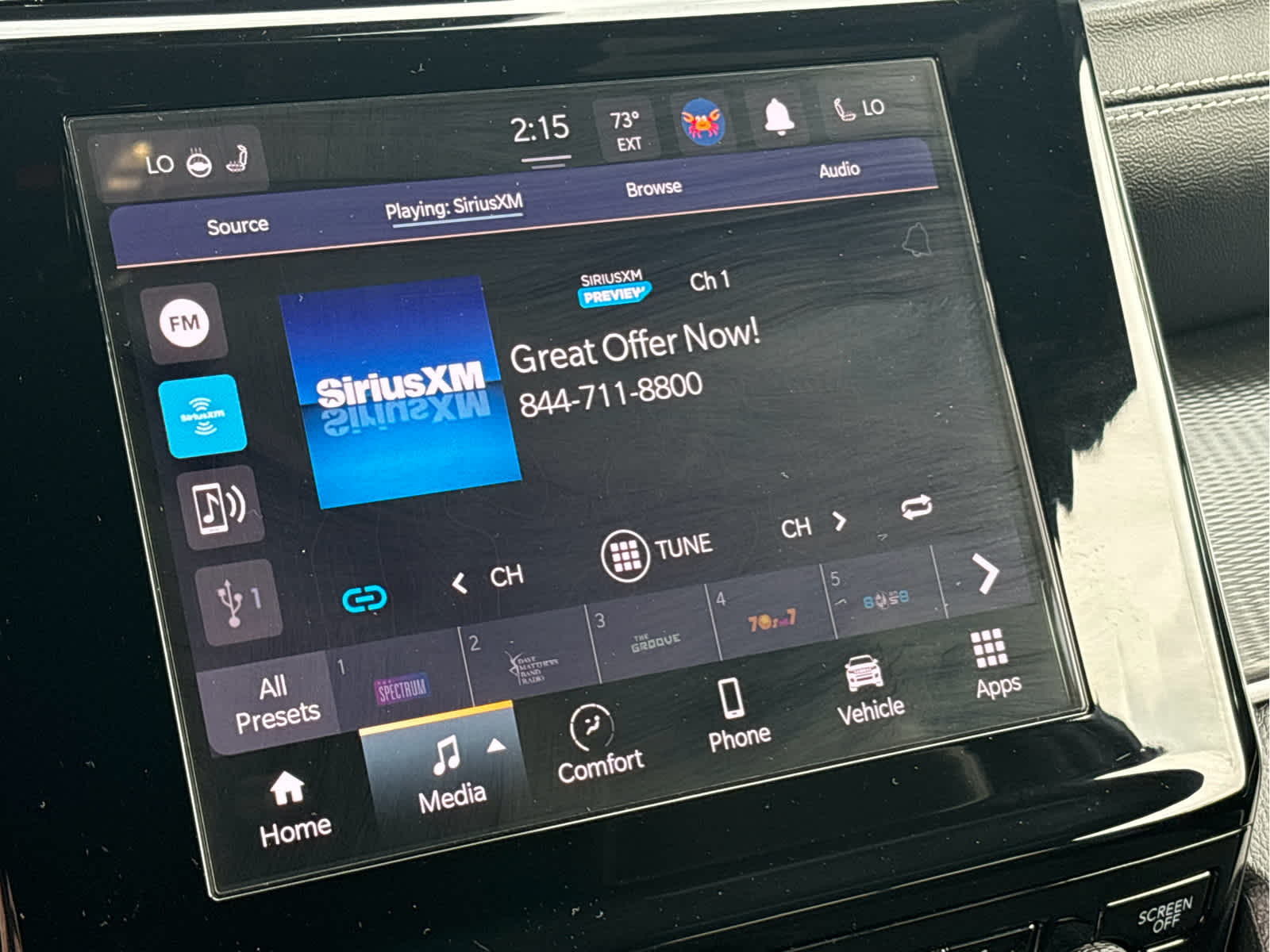 - Radio w/Seek-Scan, Clock, Speed Compensated Volume Control, Aux Audio Input Jack, Steering Wheel Controls, Voice Activation, Radio Data System and Uconnect External Memory Control