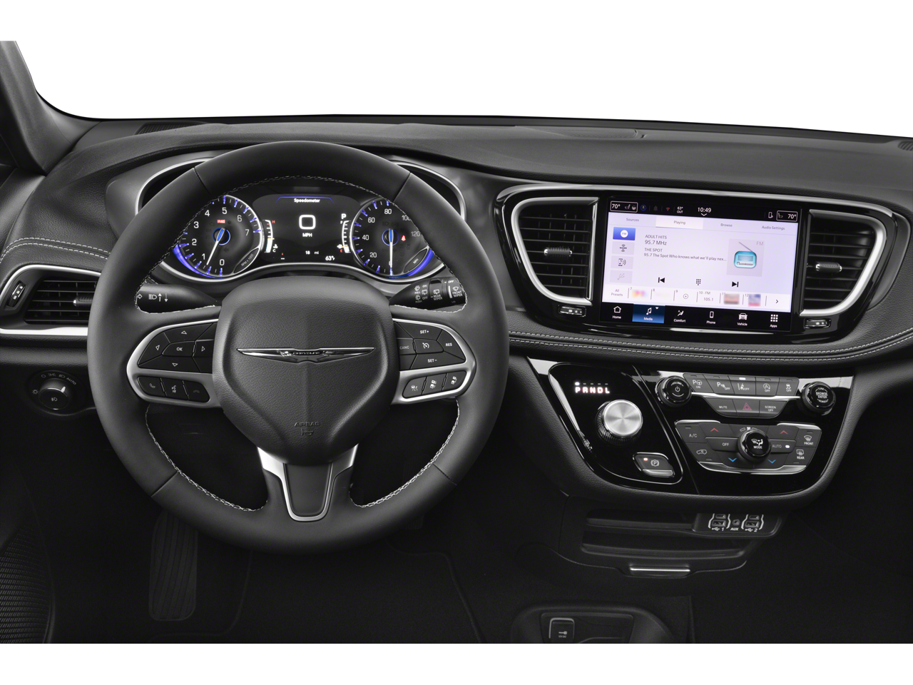 SIRIUSXM GUARDIAN - INCLUDED TRIAL (B) Global Telematics Box Module (TBM), ENGINE: 3.6L V6 24V VVT UPG I W/ESS (STD), TRANSMISSION: 9-SPEED 948TE AUTOMATIC (STD). Chrysler Select with Diamond Black Crystal Pearlcoat exterior and Black interior features a V6 Cylinder Engine with 287 HP at 6400 RPM*.
